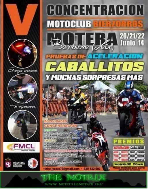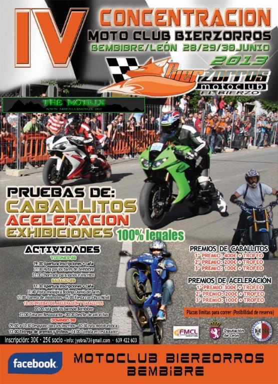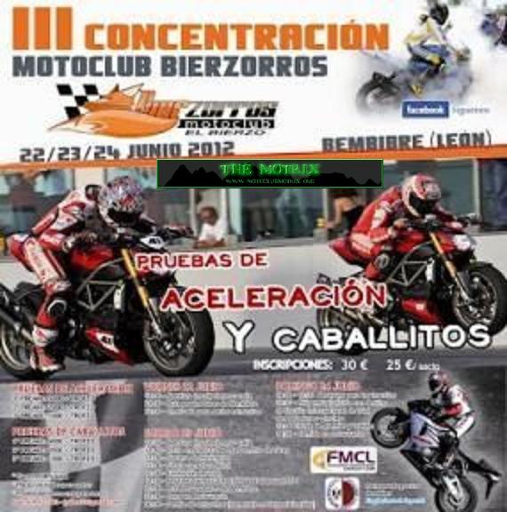 Un año mas, el motoclub Bierzorros volvemos a la carga con la concentración mas cañera y loca de todo el norte , este año con nueva ubicación, la villa de Bembibre y con nuevas sorpresas como las pruebas de aceleración y caballitos 100% legales!!! con suculentos premios en metalico.