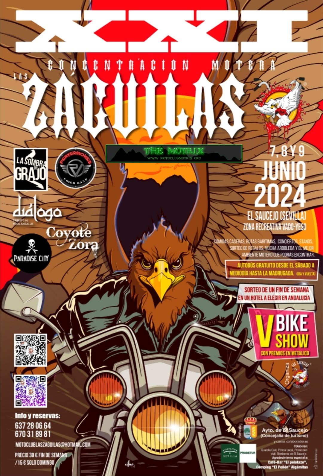 Los amantes de las dos ruedas tienen una cita el fin de semana del 7 al 9 de junio. El MotoCLub Las Záguilas organiza su XVI Concentración, que lleva 16 años organizándose en la localidad sevillana de El Saucejo. Como cada año, acudirán moteros de toda la geografía española y público extranjero, procedentes de localidades como Madrid, Barcelona, Bilbao o Portugal. En la concentración del año pasado se recibieron más de 1.500 asistentes, y este año los organizadores prevén un significativo aumento de público.