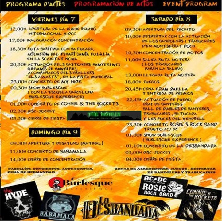 CONCIERTOS, RUTAS, JUEGOS MOTEROS, STANDS, MERCADILLO PIEZAS SEGUNDA MANO, ACTIVIDADES CULTURALES, FOOD TRUCKS., ESPECTACULO BURLESQUE...