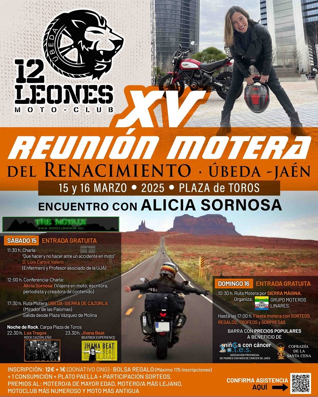 Con la intervención en modo de charla de Alicia Sornosa, rutas moteras a diferentes parques naturales el sábado y domingo y noche de rock el sábado con entrada gratuita.