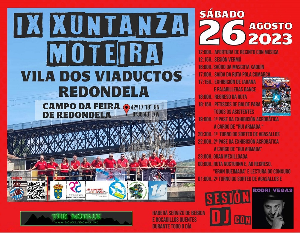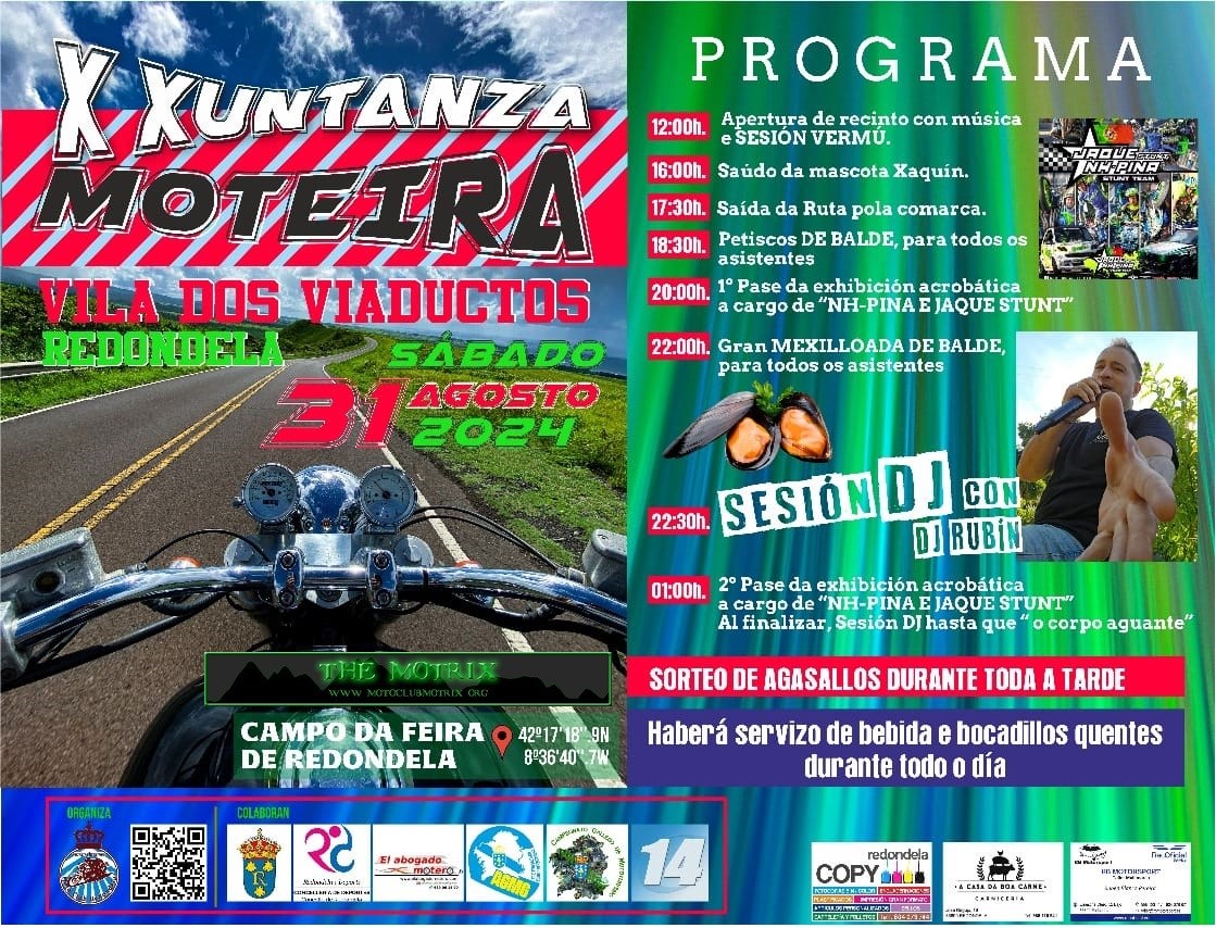 También tendremos una ruta moto turística por la comarca con una pinchada en la Taperia O Aveleiro, sorteo de regalos, mejillonada para todos los asistentes, class de zumba con los instructores, Lulú Lozano y Adriana García, Maite Guzmán y la música correrá a cargo de Master music y alguna que otras sorpresa más.......