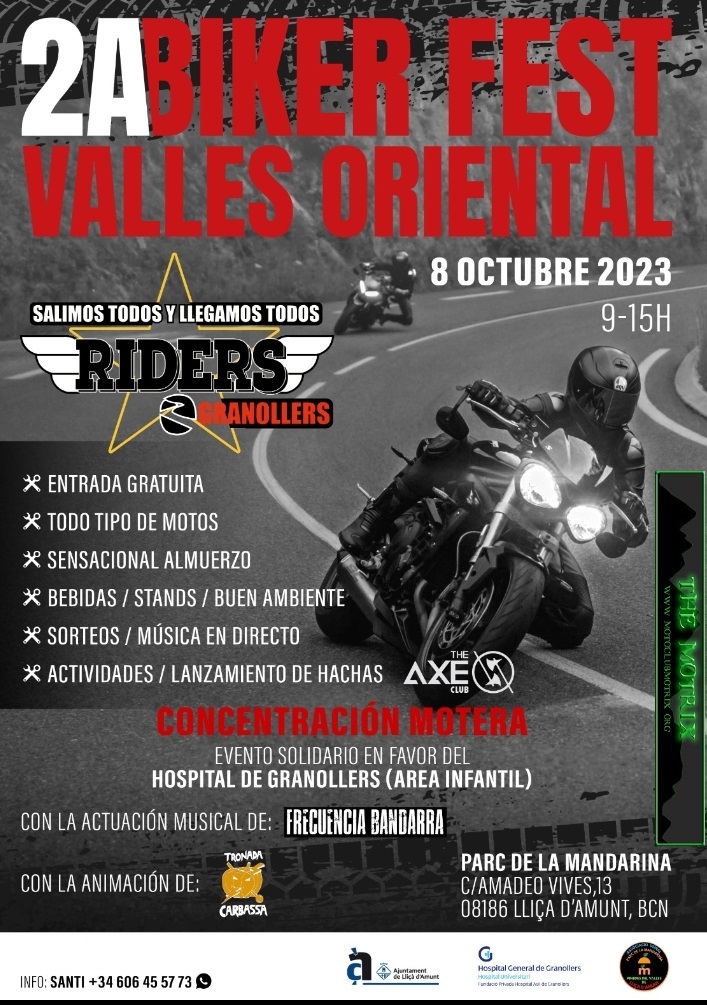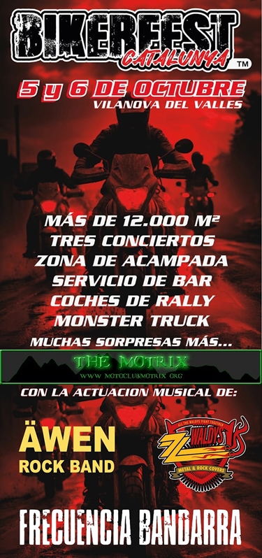 Mas de 20 carpas, 19 grupos confirmados, 2 conciertos, vinilado de motos y cascos en el momento, coches tuning, mustangs, sorteos y muchas sorpresas mas......