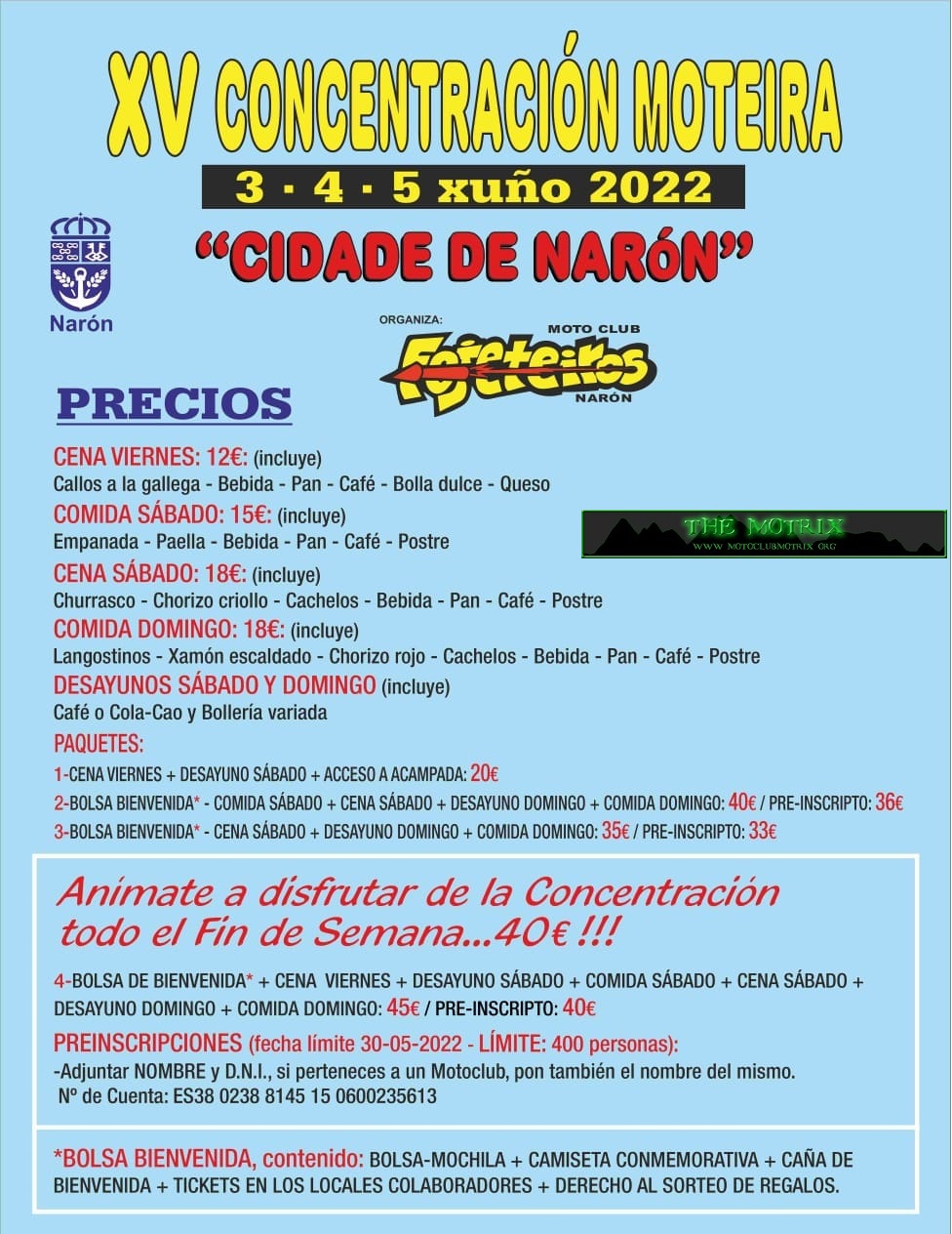 Cea del venres e sábado, almorzo do domingo, comidas do sábado e domingo.