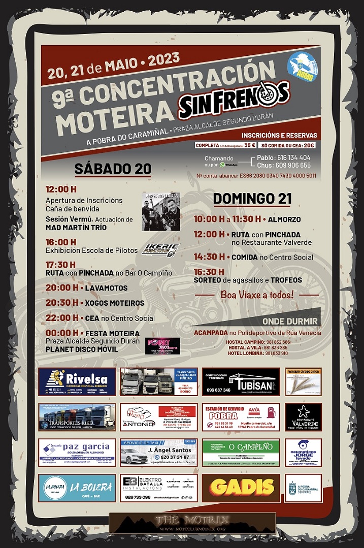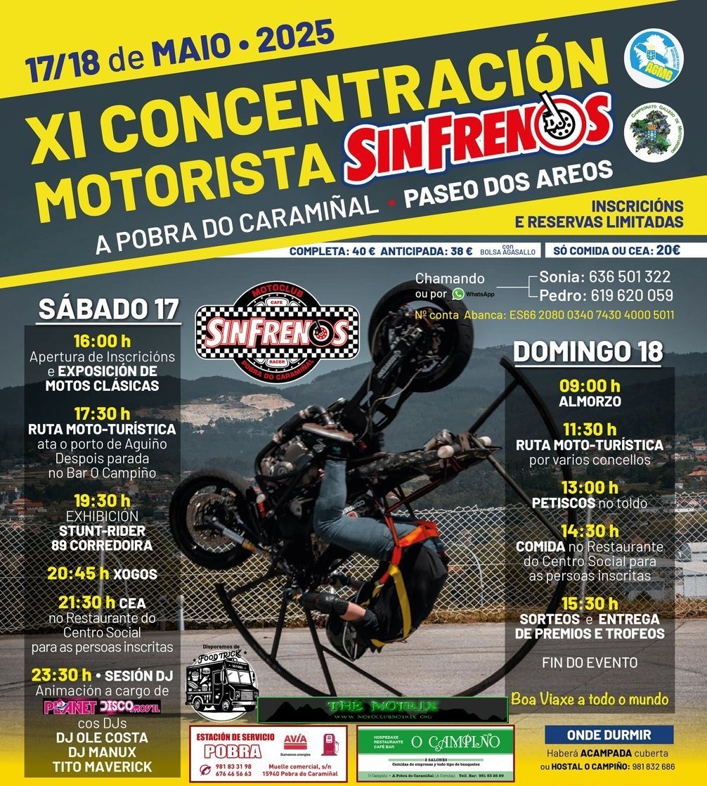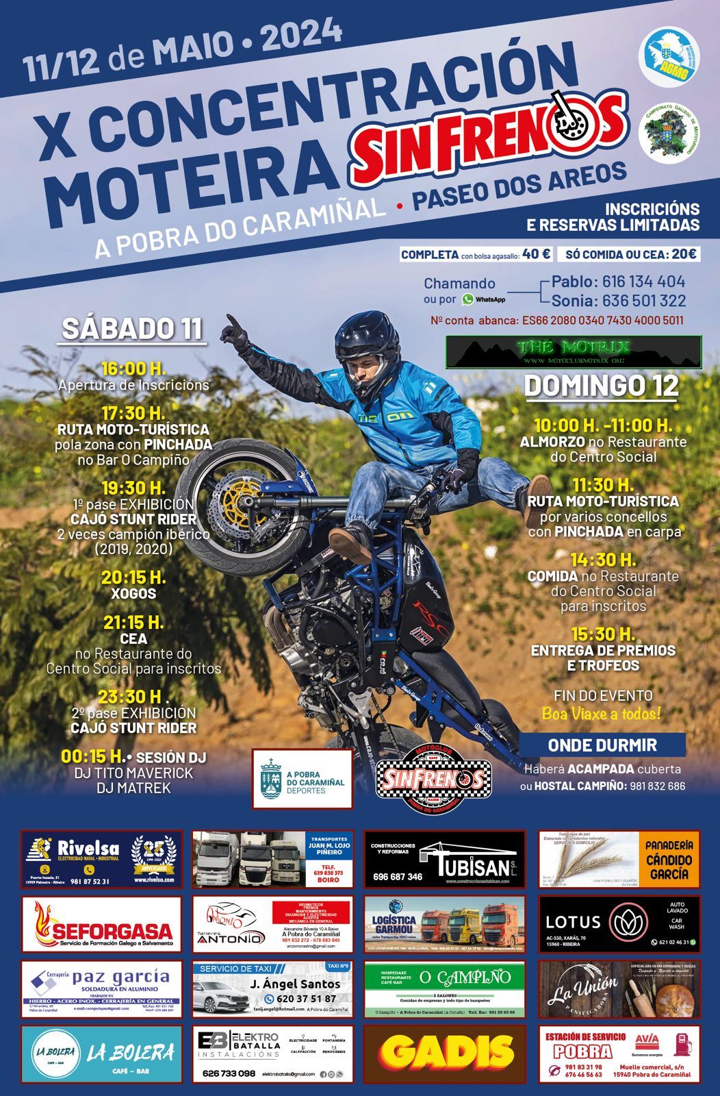 Teléfono de contacto, Sónia 636501322 y Pablo 616134404, plazas limitadas a 100 personas cuenta bancaria BBVA: 0182 5220 11 0201542111