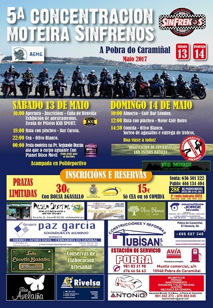 Precio 25 euros, acampada en polideportivo, plazas limitadas, sorteos y trofeos: moto club más numeroso, primer inscrito, motero o motera más lejano, inscrito de menor edad y mayor edad.