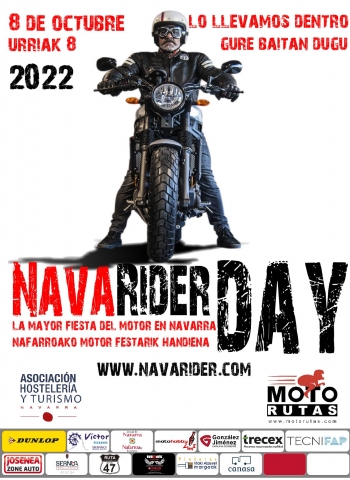 NavaRider Day es un evento motociclista no competitivo de 400 km donde hay que certificar el paso por 6 puntos de control, con salida y llegada en Pamplona.
