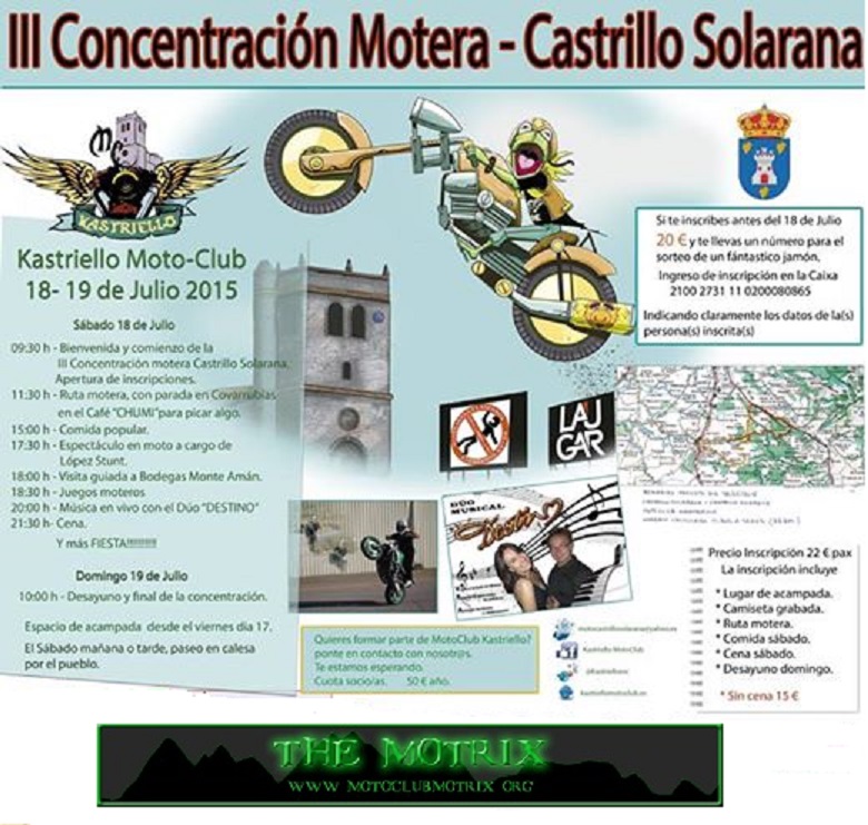 09:30 h - Bienvenida y comienzo de la III Concentración motera CastrilloSolarana. Apertura de inscripciones.