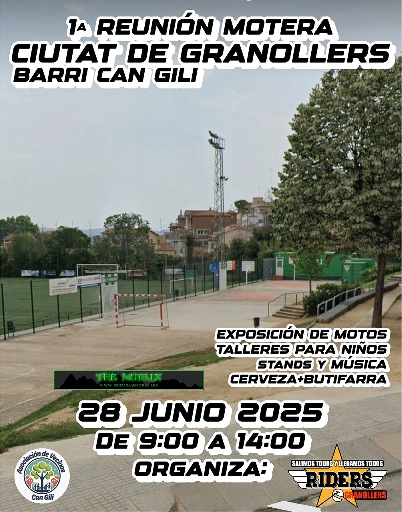 Desde las 9:00h primera reunión motera en el barrio de can gili ( Granollers) se acepta cualquier tipo de moto y cilindrada , talleres para los peques, stands, música, bocata tradicional de butifarra, ven y disfruta de una mañana de Rock and Roll