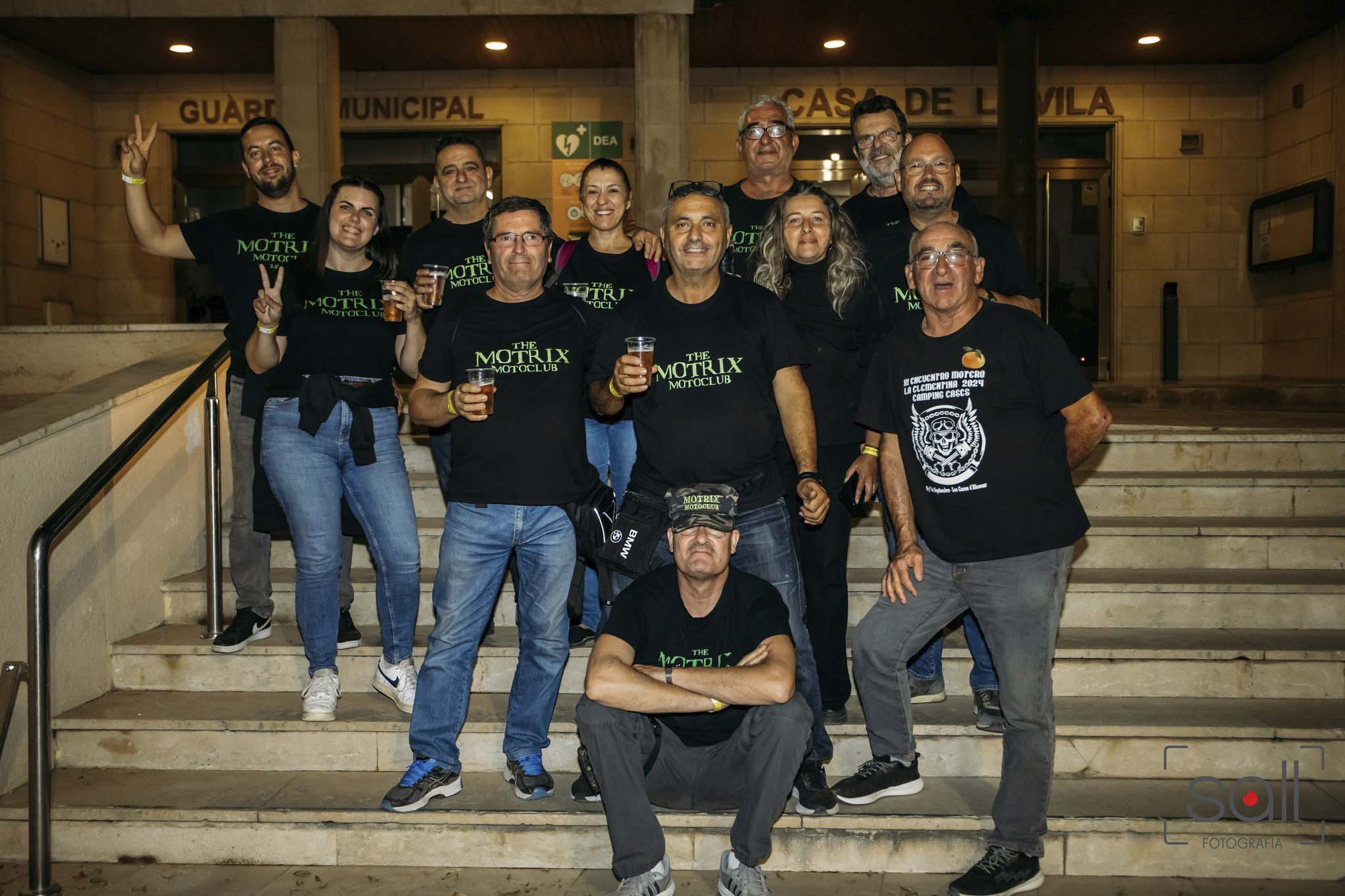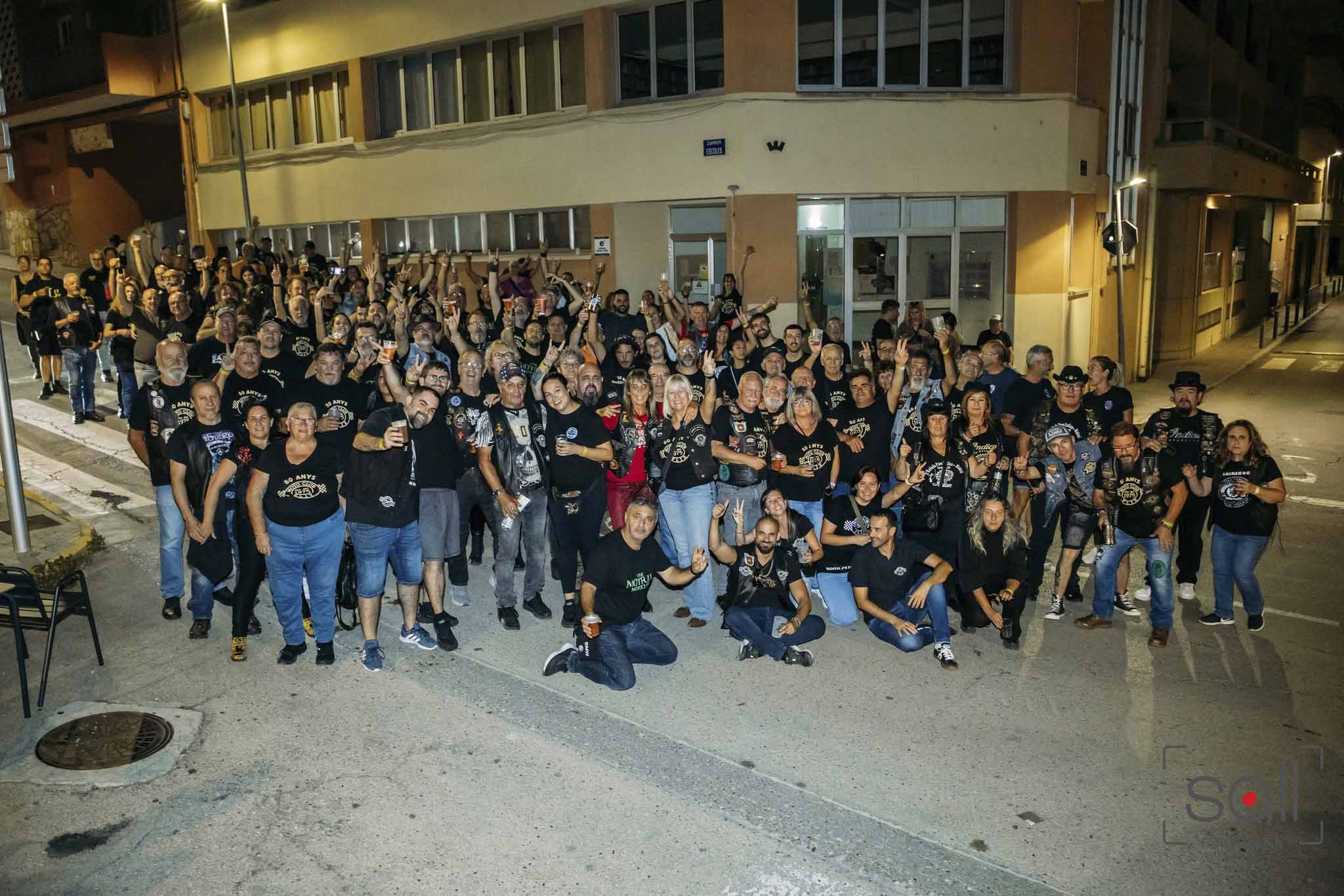 Seguido de la comida, una riquísima fideuá con postre de helado y cafés. Un poco de calma para cargar pilas por la tarde y tienen lugar los clásicos juegos moteros. Empiezan las risas. Arrancamos el correbars detrás de una furgo-disco y dedicamos un par de horas a ajetrear el pueblo, con aperitivo y cuatro consumiciones en bares colaboradores. De ahí a la cena, a base de guiso de carne con patatas, helado y café. A continuación un emotivo homenaje a los caídos, precioso. Y dando paso al concierto del grupo Rock Añejo, de rock estatal muy acertado, con muy buen ambiente en general toda la noche.
