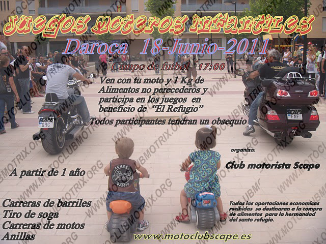 17:00: Juegos moteros infantiles solidarios, para recoger alimentos no perecederos a favor de “El Refugio” de Zaragoza.