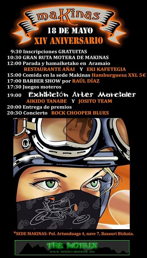Sábado 24 de mayo de 2014, Comienza en la sede “maKinas”: P.D. Ind. Artunduaga Basauri, Vizcaya (Frente a Harley Basauri)
