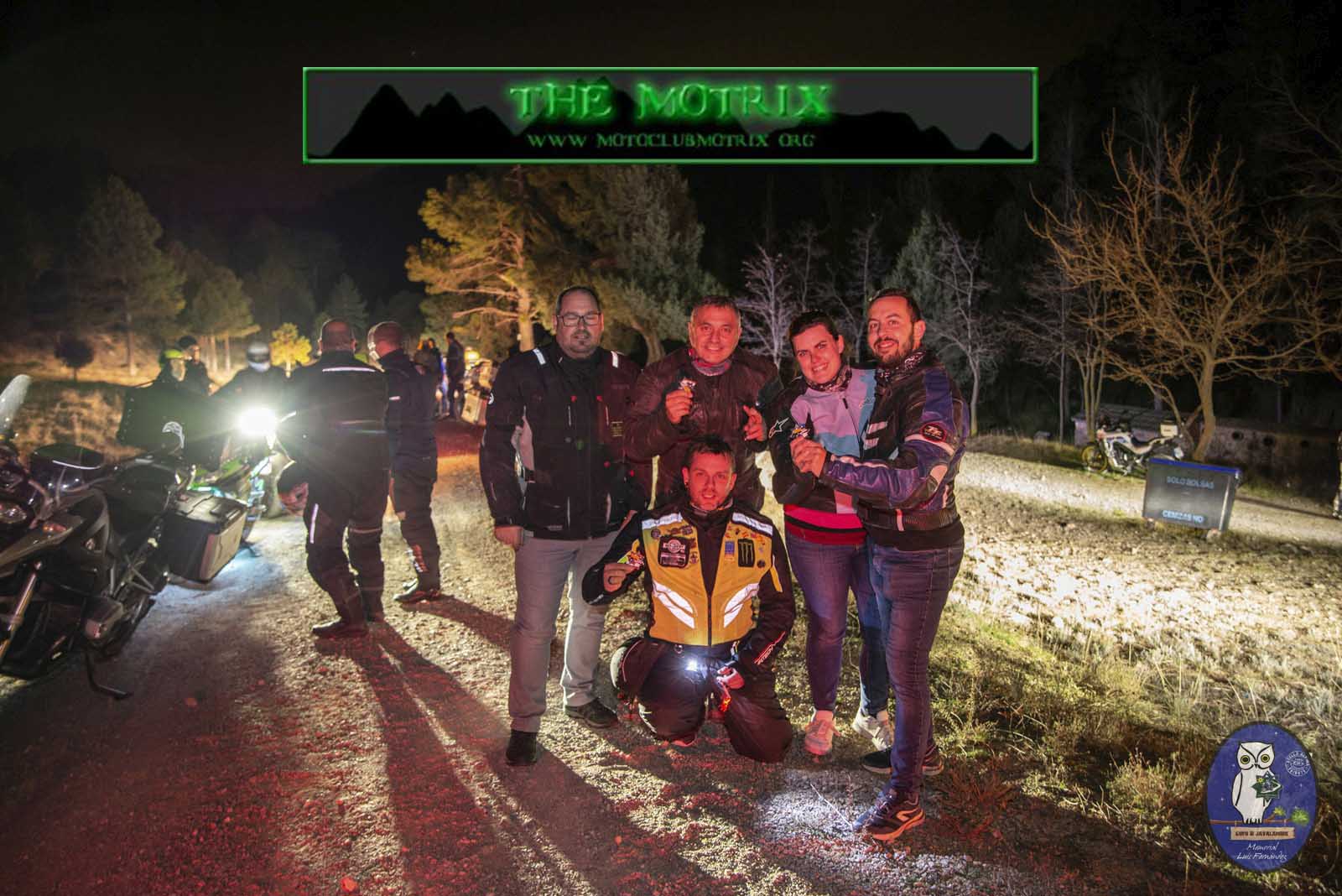 Una vez allí saludamos algunas caras conocidas. Hacemos una cerve brindando por la ruta. Y subimos al "Búho de Javalambre" en honor al ideólogo Luís Rodríguez, que es la subida nocturna a por la estrella. Sumando la oscuridad de la noche, pero con menos kms de pista, obtenemos la medalla de esta edición. Mucha moto arriba. Bajamos a dejar las motos ya hasta mañana y nos sumamos al concierto de los divertidos Bandurrok que amenizan la tarde. A continuación buscamos donde cenar y acabamos a bocatas en una terraza, con suerte, puesto que el pueblo de Manzanera (500 habitantes) está saturado con los más de 400 inscritos de esta edición. Subimos a la hoguera a ver el emotivo homenaje a los caídos y pase de antorchas. Y sólo queda celebrar en el pabellón municipal con música en lata hasta que el cuerpo de cada uno guste.