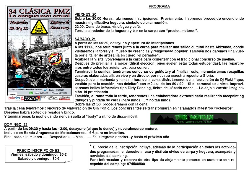 Almuerzo Domingo = 6 € (Ronda Motoalmuerzos 2014-2015)