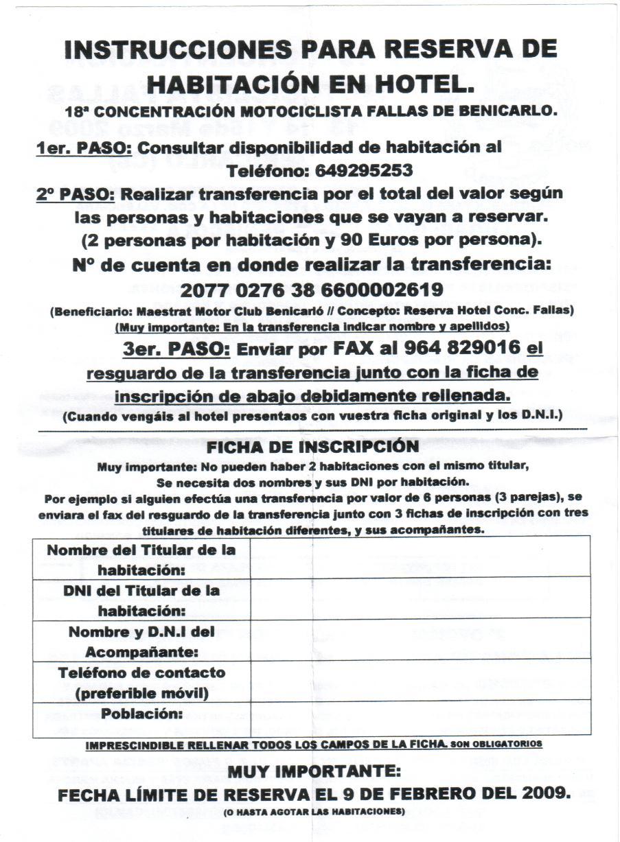 (IMPRESCINDIBLE RESERVAR ANTES DEL 9-02-2009)