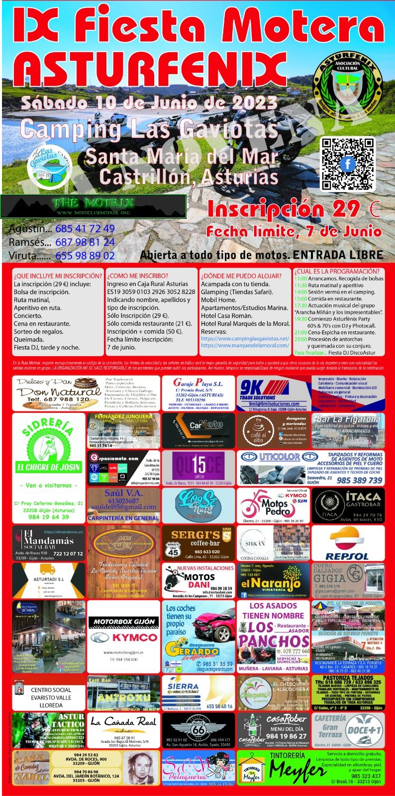 Inscripción 29€ (Bolsa inscripción, ruta matinal, aperitivo en ruta, concierto, cena en restaurante, sorteo de regalos, queimada y fiesta Dj)