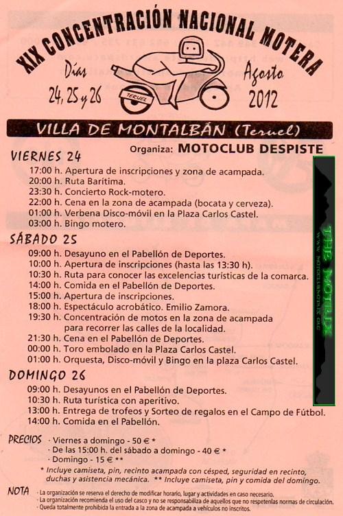 Programa 2012, escrito y en imagen, por si lo quereis imprimirMotrix Reloaded escribió:XIX CONCENTRACION NACIONAL MOTERA VILLA DE MONTALBAN