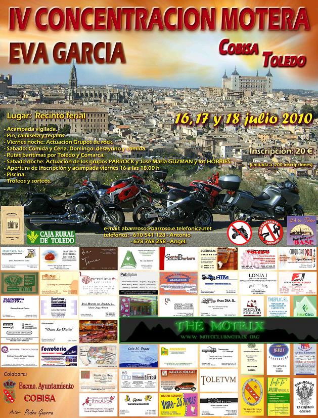 Hola...Estamos preparando todo para poder asistir en el mes de Julio a Eva Garcia....es una de las concentraciones que aconsejo que vayais este año o algun año...no se puede faltar,pues es una de las que se realiza por una causa ....hay que ir para poder entender a este grupo de amigos y sobre todo a Antonio y su mujer..pues ellos saben bien el motivo por el cual realiza esta concentracion............... :geek3d: ............desde el motoclubmotrix.....esperamos este año poder asistir a esta concentracion .......saludos y dentro de unos dias no veremos. :rules3d: