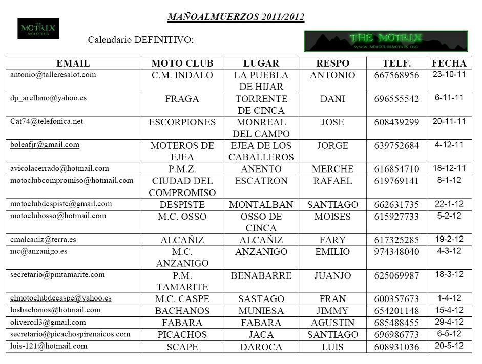 La inscripciones para participar en el campeonato se realizara en los tres primeros almuerzos después se cerraran las inscripciones, o en este correo antonio@eventosmoteroszgz.es con la información siguiente: