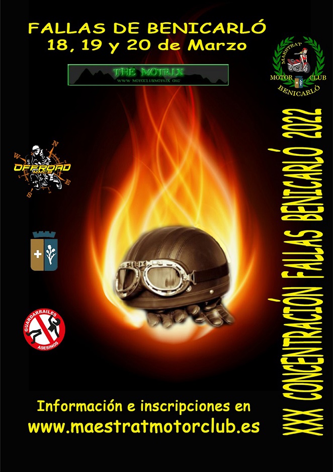 Lamentamos comunicar, que por causas ajenas a la organización, este año no dispondremos de la oferta hotelera, pero tendremos una concentración como siempre, actos, consumiciones, ruta, conciertos y fallas y nuestra Zona Motera con tenderetes moteros y footruck para refrescar y alimentar el cuerpo.