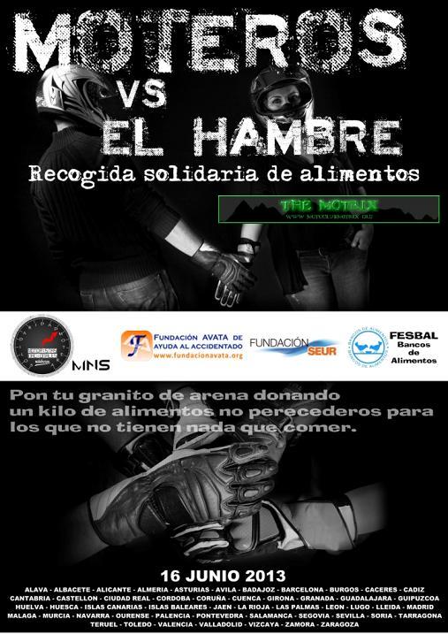 EL TRABAJO DE CADA MOTOCLUB SERA EL DE MOVILIZAR AL MAXIMO DE MIEMBROS, SIMPATIZANTES, CONOCIDOS, O SIMPLEMENTE COMPAÑEROS MOTEROS PARA QUE APORTEN SU GRANITO DE ARENA EN FORMA DE UN KILO DE COMIDA NO PERECEDERA. TODA ESA COMIDA SE ENTREGARÁ EN UNA CONCENTRACION MOTERA MATINAL EL DIA 16 DE JUNIO DE 2013. EL LUGAR DE LA CONCENTRACION EN ALMERÍA ESTÁ AÚN POR DETERMINAR (DE ESO ME ENCARGO YO AUNQUE COMO YA HE DICHO SE ADMITEN SUGERENCIAS)