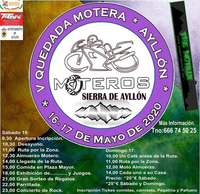 Sir Gallard escribió: ↑24 May 2022, 14:01 Estube este finde en esta concentracion, no falto de nada. Chocolate con churros en la ispcriccion. Acampada en campo de futbol, 2 rutas con sus pincheos...paella mixta buenisima el sabado para comer y parrilada para cenar...con sus respectibas bebidas....sorteo de regalos, stund y grupo de musica en la plaza. Muy familiar. Los del motoclub...muy enrollaos....tube problemas de arranque en el scooter y ellos me lo solucionaron...bornes flojos de la bateria !!!. YO SEGUNDA VEZ KE VOY...Y SI PUEDO VOLVERE POR AYLLON !!!