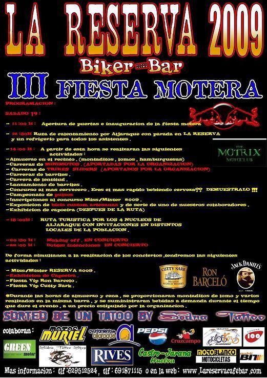 En primer lugar informaros que este evento es muy importante para nosotros, ya que es la primera vez que vamos a hacer este tipo de evento solidario. este evento se va a crear tambien en http://www.tuenti.com (podeis agregarnos como amigo, nuestro nombre en tuenti es la reserva biker bar) por lo que os agradeceria que le dieramos entre todos la mayor difusion posible, ya sea por tuenti, por e-mail, por webs moteras o por el simple boca a boca. Pero que lo difundais a todos vuestros contactos y amigos. En breve colgaremos en http://www.lareservacafebar.com mas informacion del evento y ante todo GRACIAS POR VUESTRA AYUDA.