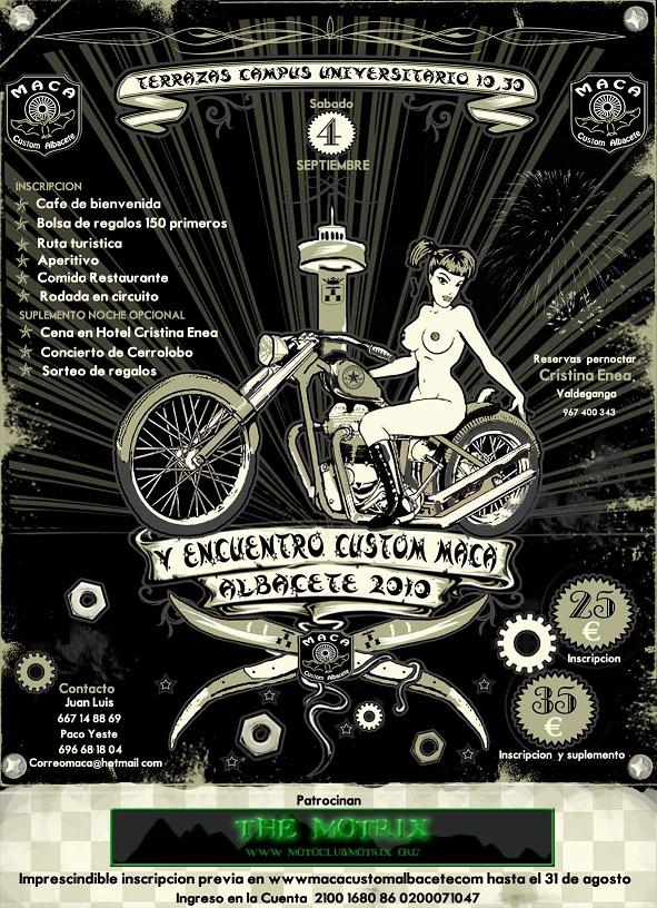 En primer lugar, muchas gracias por colgar la información de nuestro V Encuentro Custom MACA 2010 que celebraremos el sábado 4 de septiembre en Albacete.