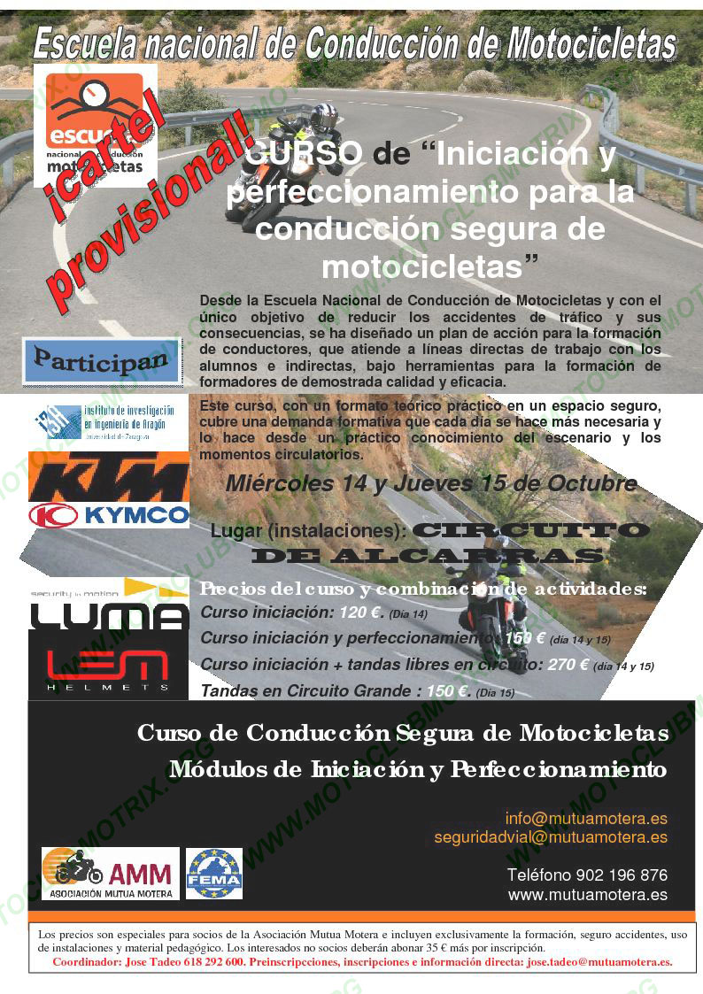 Los precios son especiales para socios de la Asociación Mutua Motera e incluyen exclusivamente la formación, seguro accidentes, uso