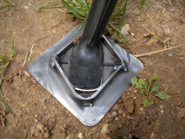 A ver …………… como me explico yo sin reírme…….. la moto que está en la foto que he puesto ,esta sobre el caballete central, fijaros, entonces en la pata de cabra esta la chapa, que deduzco que es una chapa doble ,una lisa y otra con un “ agujero “de un diámetro menor que la parte que apoya la pata al suelo, luego se unen por 4 tornillos o remaches y así cuando subas la pata no se cae y siempre esta puesta.