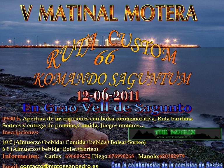 El domingo 12 de junio de 2011 se celebrará la V MATINAL MOTERA KOMANDO SAGUNTUM.