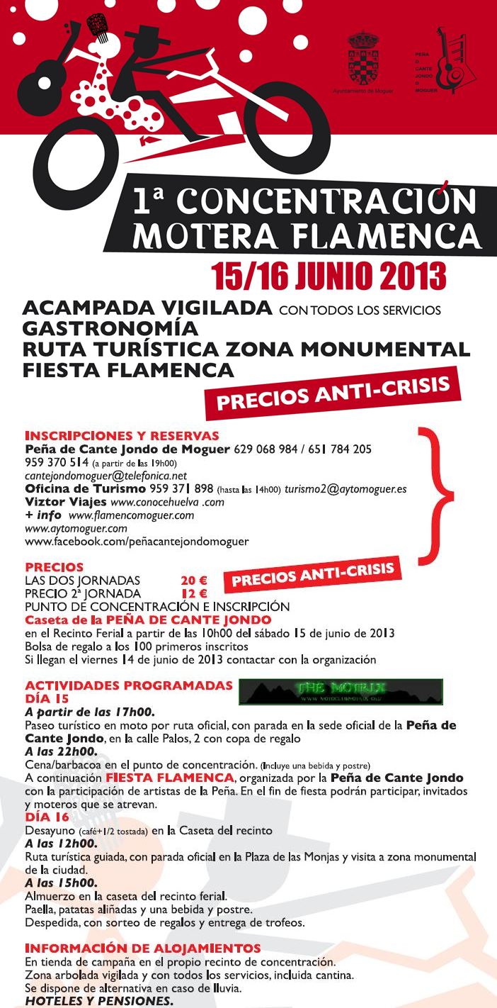 La Peña de Cante Jondo de Moguer, ha organizado para los días 15 y 16 de junio de 2013, la Iª CONCENTRACION MOTERA FLAMENCA.