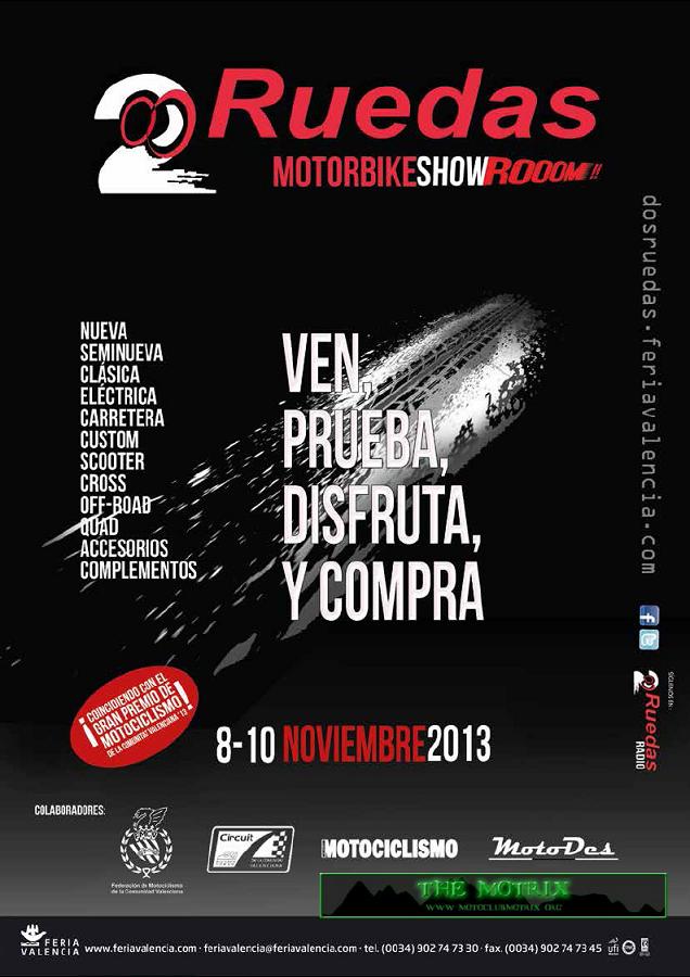 Las motos estarán de nuevo en Feria Valencia del 8 al 10 de noviembre con la reedición del salón 2 Ruedas, un certamen que retoma la filosofía y el nombre de aquel que se estuvo celebrando hasta 1996. En esta ocasión, se da la circunstancia de su coincidencia durante el mismo fin de semana con la celebración del Campeonato del Mundo de Motociclismo en el Circuit de la Comunitat Valenciana Ricardo Tormo. Con tal motivo, se espera que Valencia sea esos días toda una referencia mundial para el mundo de la moto.