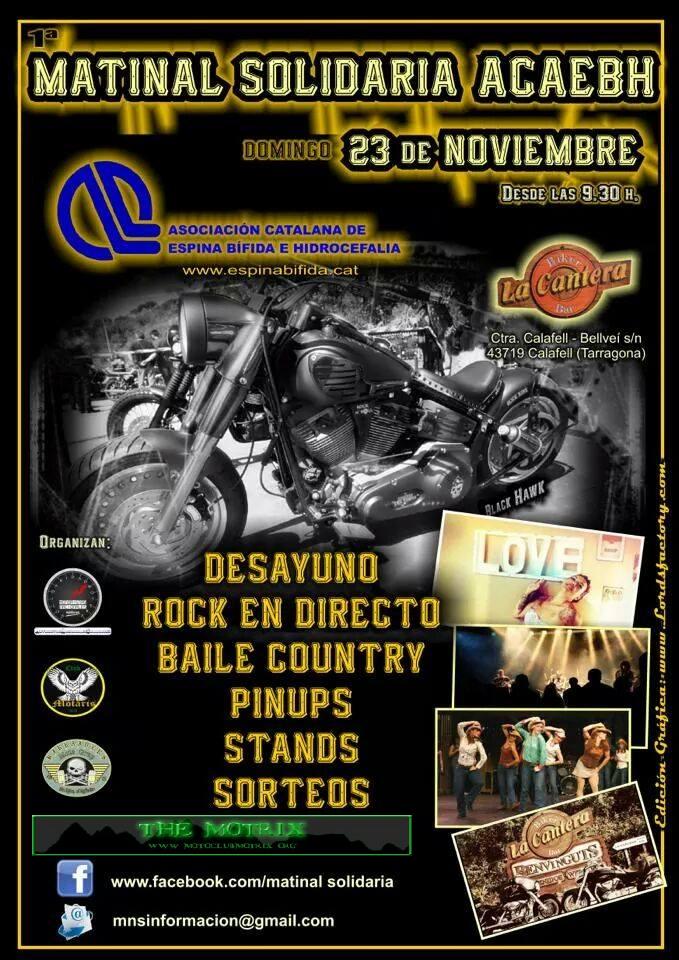 Esta matinal nos hemos juntado tres grandes grupos, Motoristas Nacionales Solidarios, Motaris MG y Birraiders MG, para ofreceros la I Matinal Solidaria ACAEBH, a favor de la Asociación Catalana de Espina Bífida e Hidrocefalia.