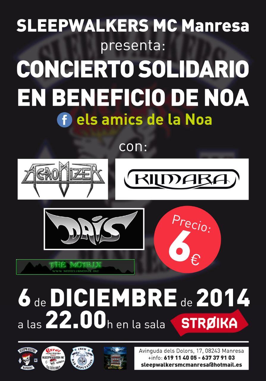 como Presidente de Sleepwalkers MC Manresa me dirijo a vosotros para invitaros a una velada de Rock Metal que hemos organizado en solidaridad con "NOA". Imagino que muchos de vosotros conocÉis su problema y el que no os dejo su pagina de Facebook en el cartel que os adjunto para que lo podáis conocer. la recaudación de la entrada ira destinada integramente para ella. esperamos poder contar con vuestra presencia. Sin mas un saludo mío y de toda la familia Sleepwalkers MC.