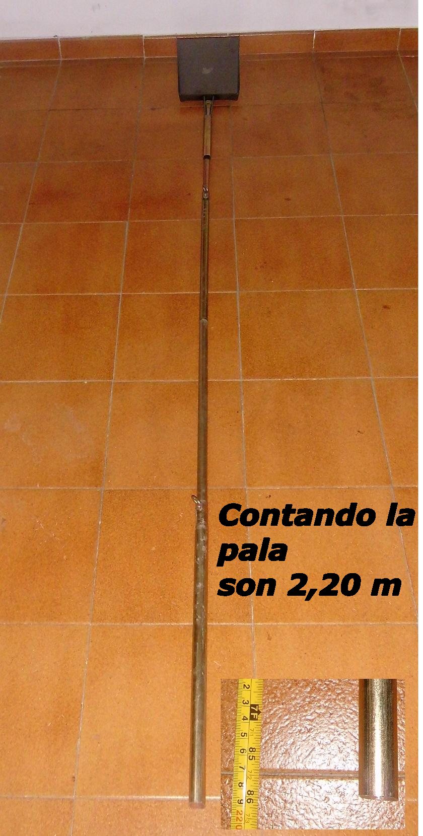 La pala de los chinos, 4.5€, el problema era la barra, tendría que ser larga y resistente, después de mirar me decidí por unas barras de las que se usan para los avancés de las caravanas, dos palos a dos € cada uno, de segunda mano y de diferentes medidas, cortadas en cuatro tramos de 53 cm, para que entren en la maleta