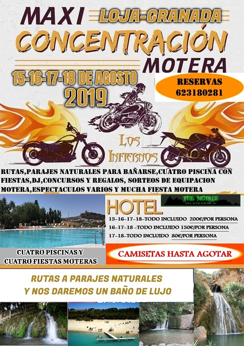 HABRA STAND MOTEROS, EXPOSICION DE MOTOS Y MUCHAS ACTUACIONES SORPRESAS Y PISCINA TODOS LOS DIAS INCLUIDA YA EN EL PRECIO Y PARA LOS MOTEROS PEQUES DE MENOS DE 10 AÑOS GRATIS Y SERVICIO DE GUARDERIA Y ATRACIONES PARA LOS PEQUES