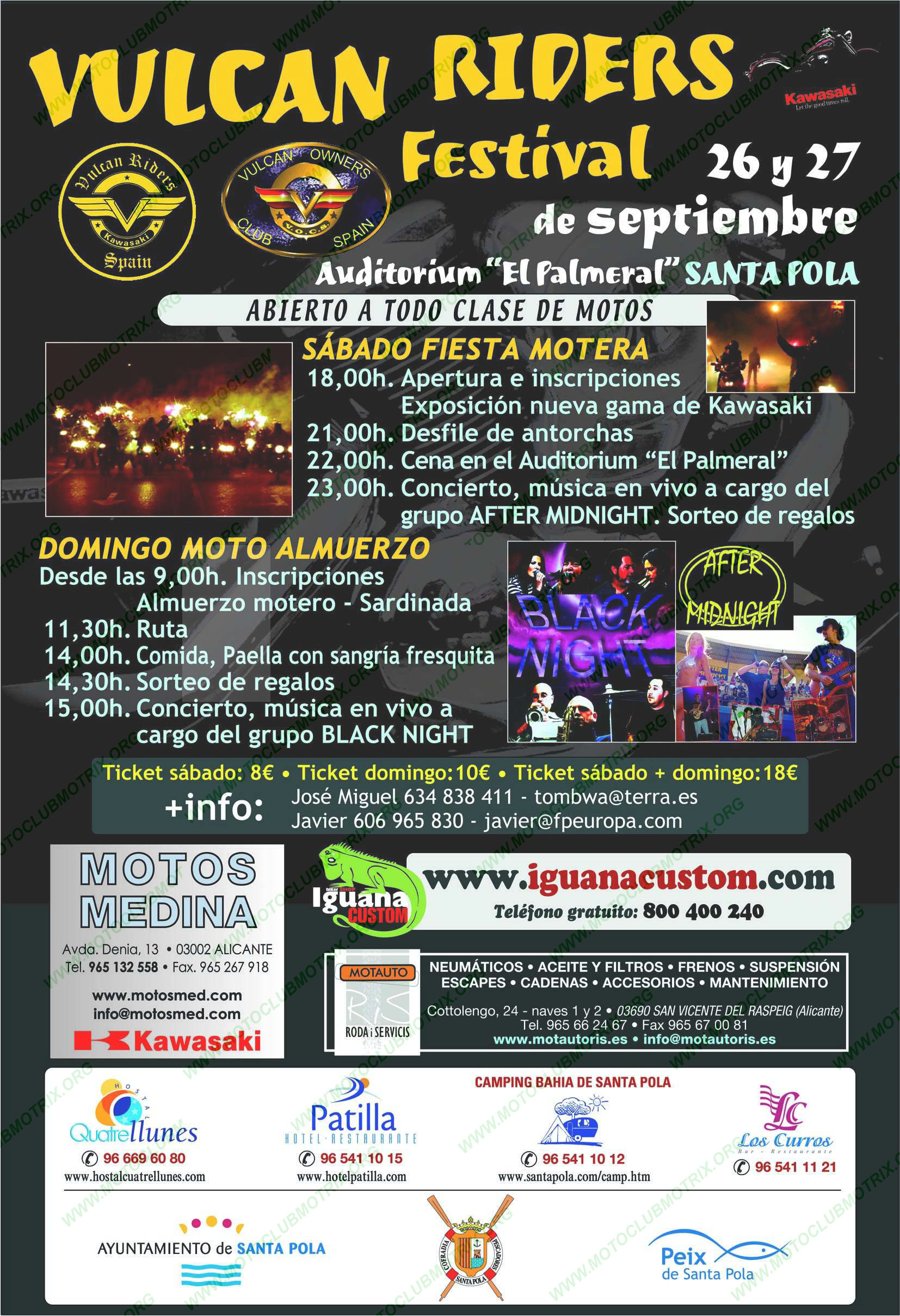 PARCIAL DOMIGO: 10 EUROS INCLUYE: bolsa de regalos, bebida de vienvenida, almuerzo motero “sardinada”, ruta, comida “paella con sangria”, concierto música in vivo y sorteo de regalos.