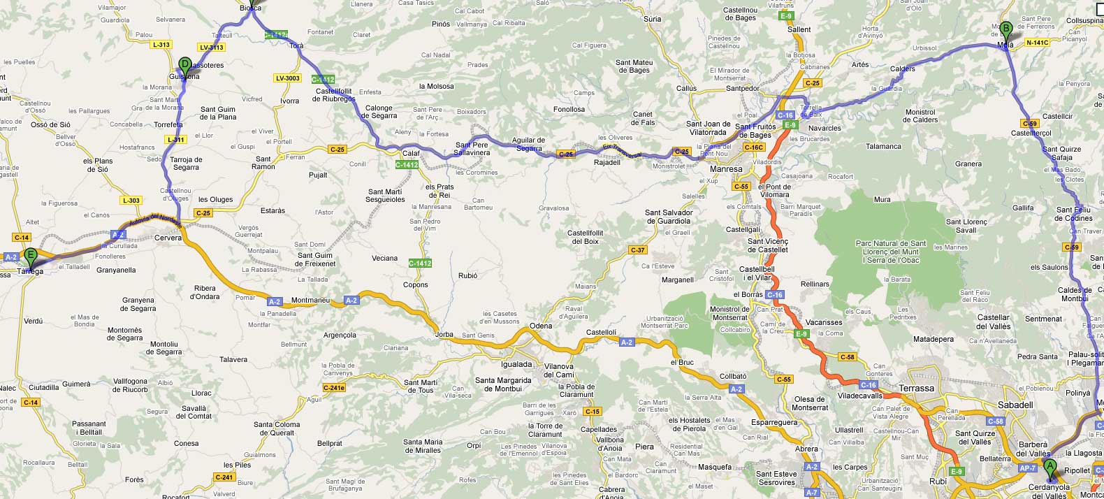 La ruta en el Google Maps: Ruta Cerdanyola - Tárrega (Ni óptima, Ni rápida, ...)