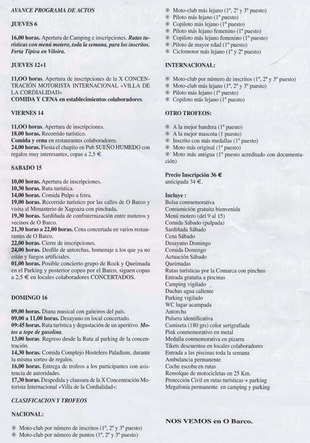 Dejo el programa del 2009 , apuntar que la concentra empieza el jueves 13 de agosto