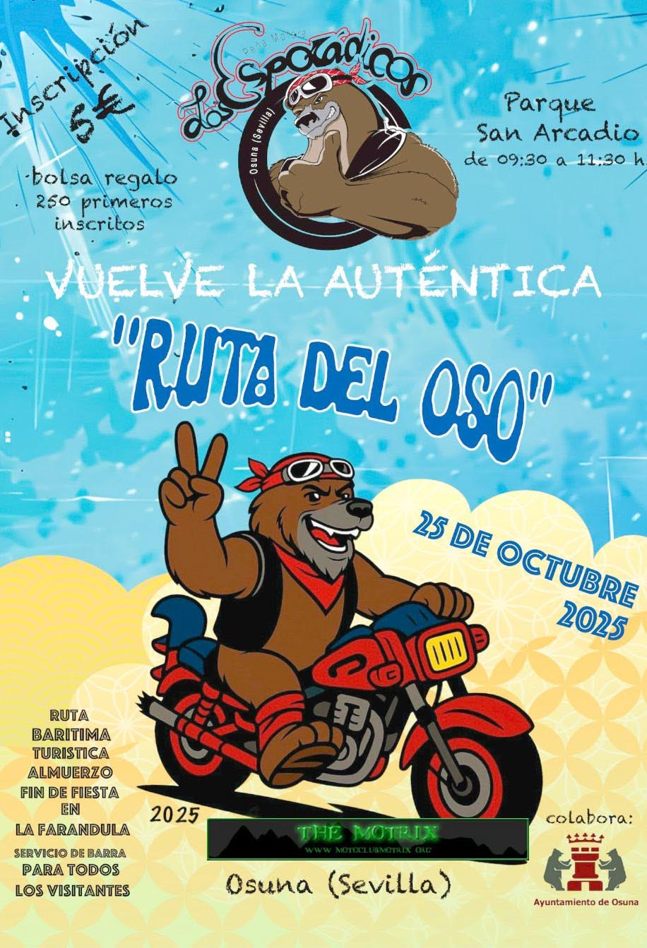 11:30h INICIO DE LA RUTA BARÍTIMA. Saldremos de La Farándula para hacer una ruta pasando por lugares emblemáticos de Osuna con 4 paradas de “repostaje gratuito” para inscritos, gracias a nuestros colaboradores.