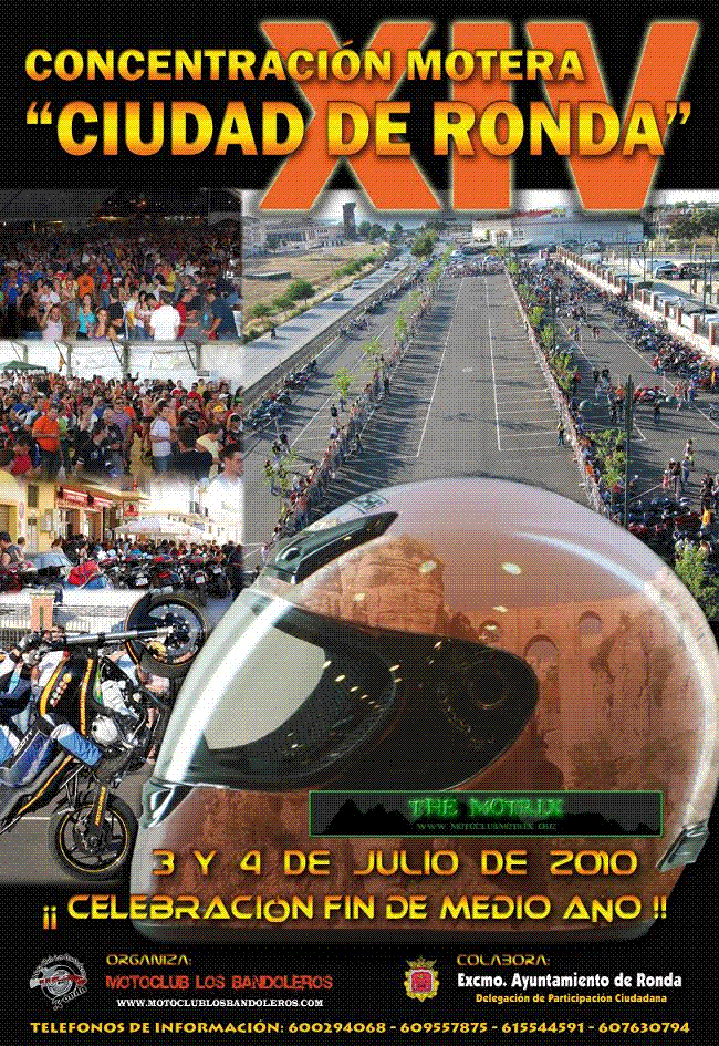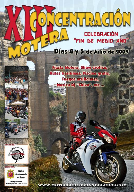 OTRO AÑO MÁS EL MOTOCLUB LOS BANDOLEROS OS INVITA A LA XII CONCENTRACIÓN MOTERA DE RONDA QUE SE CELEBRARÁ DURANTE LOS DÍAS 5 Y 6 DE JULIO DEL 2008 , NO OLVIDES COMENTARSELO A TUS COLEGAS, SI EL AÑO PASADO LO PASASTE BIEN; ESTE AÑO NI TE CUENTO.