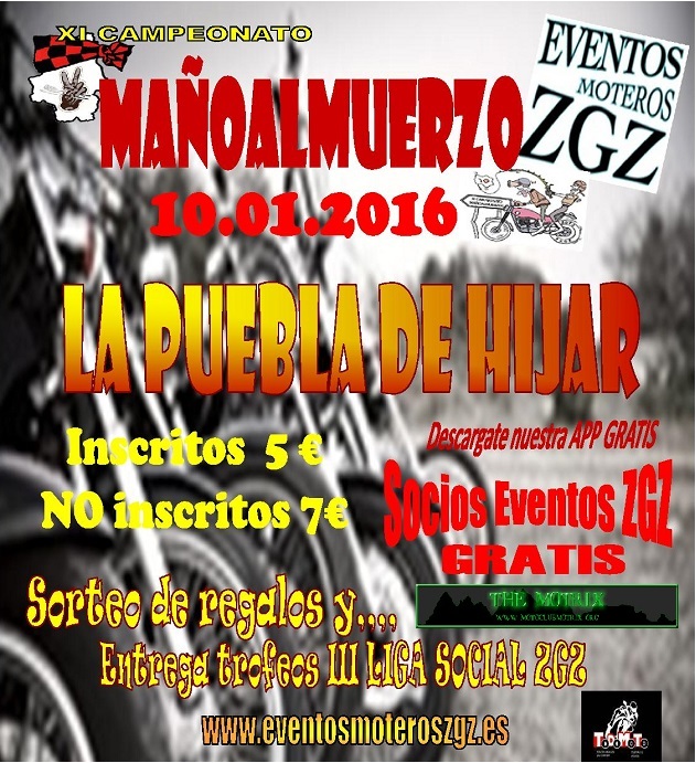 El domingo día 22 de noviembre en Montalbán (Teruel), uno más de los Mañoalmuerzos de los que se realizan por tierras mañas en este XI Campeonato de Mañoalmuerzos. Organizado por el Motoclub Despiste.
