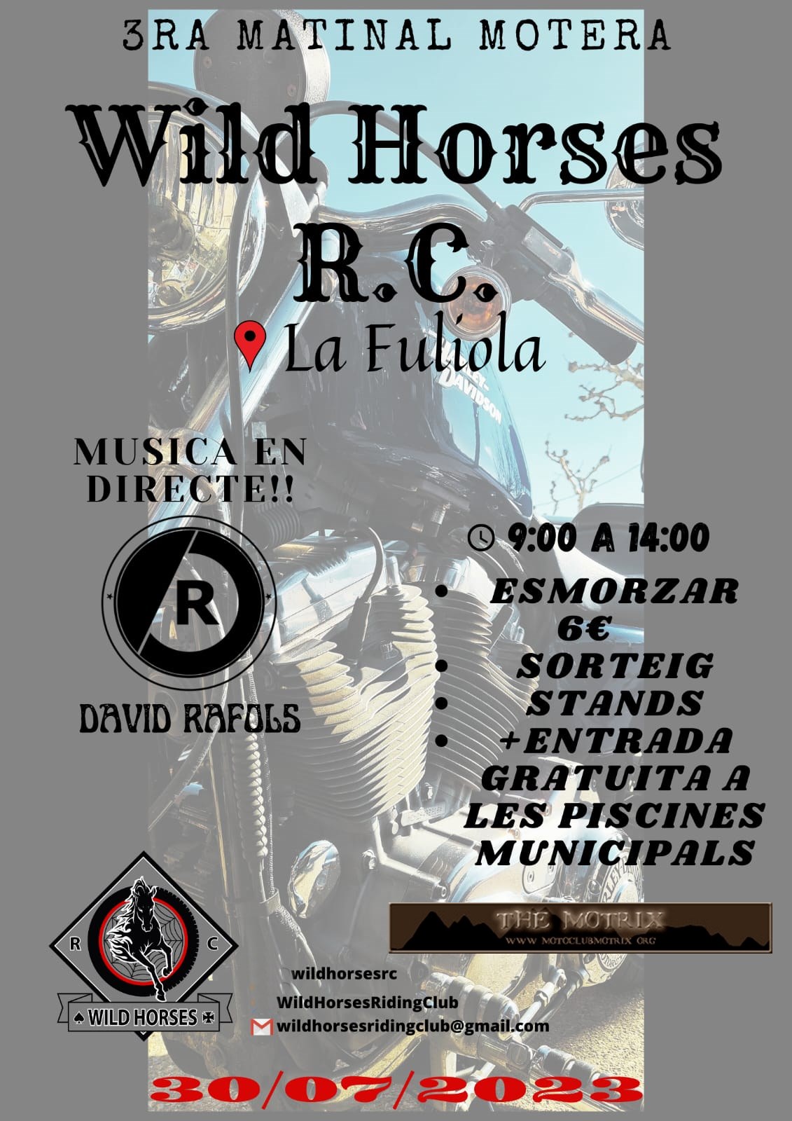 Després d'un parell d'anys sense matinal a causa de la pandèmia reprenem el que vam iniciar el 2019. Ja tenim cartell per a la 2a Matinal Motera Wild Horses RC a La Fuliola. TOTHOM està convidat a assistir-hi
