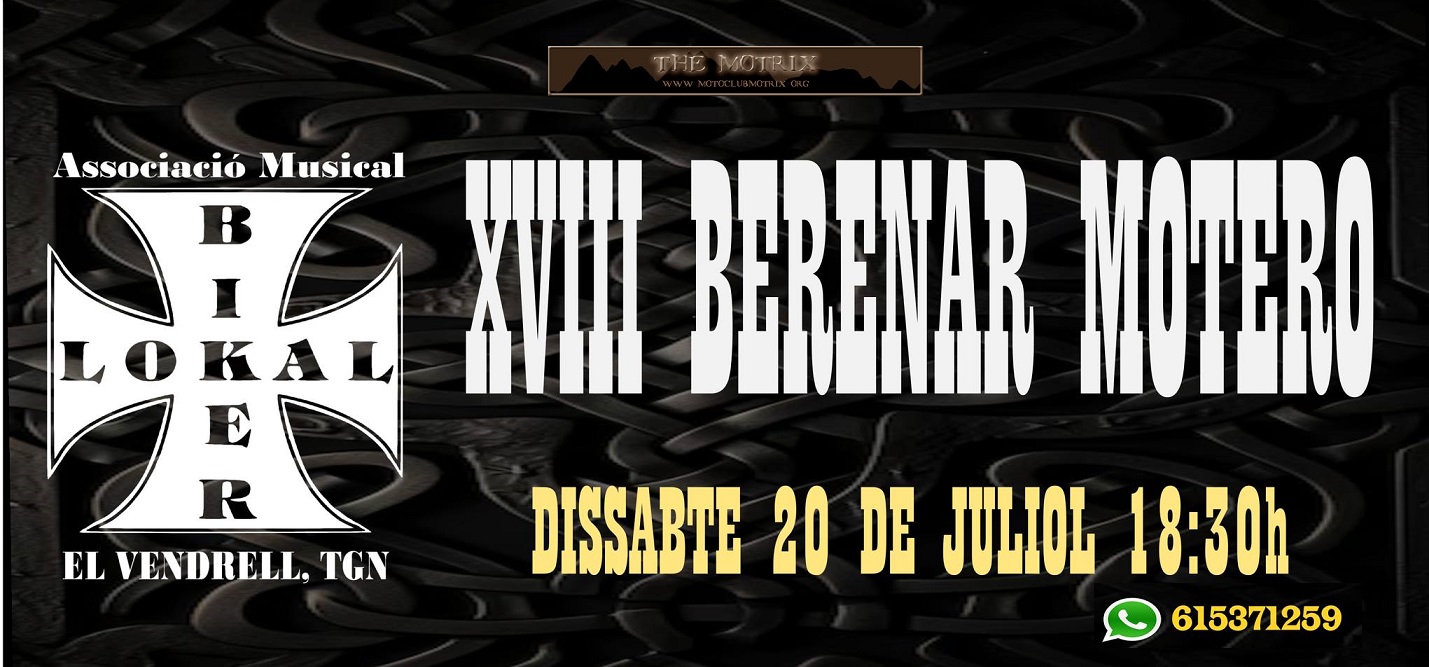 Desde la Asociación Motera El Lokal organizamos por 11º año consecutivo el Berenar Motero en El Vendrell frente a nuestra sede el Lokal Biker, ubicado en la calle Josep María de Sagarra, y que quedará un año más cortada para que la podamos llenar de motos, música y ambiente de tarde de verano en buena compañía, la tuya.