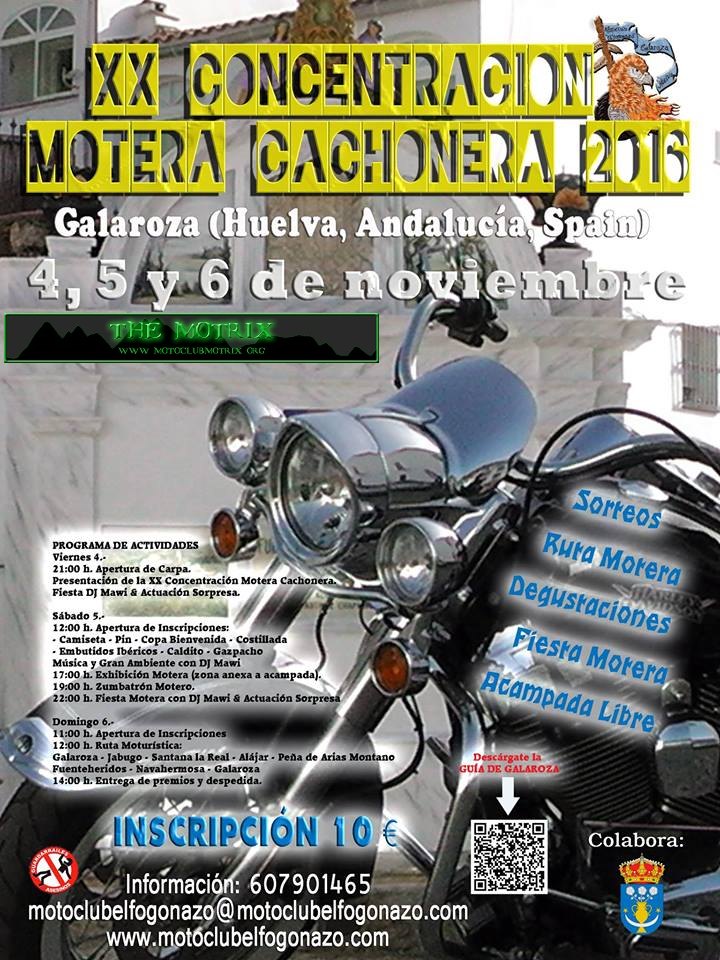 Más de veinte años lleva Galaroza organizando una gran concentración que se ha convertido en un acontecimiento clave en el calendario onubense. Los artífices de la concentración se encuentran en el Motoclub El Fogonazo, asociación cachonera que cuenta con socios de diversas localidades, y que se ha convertido en un agente social de elevada importancia en su pueblo.
