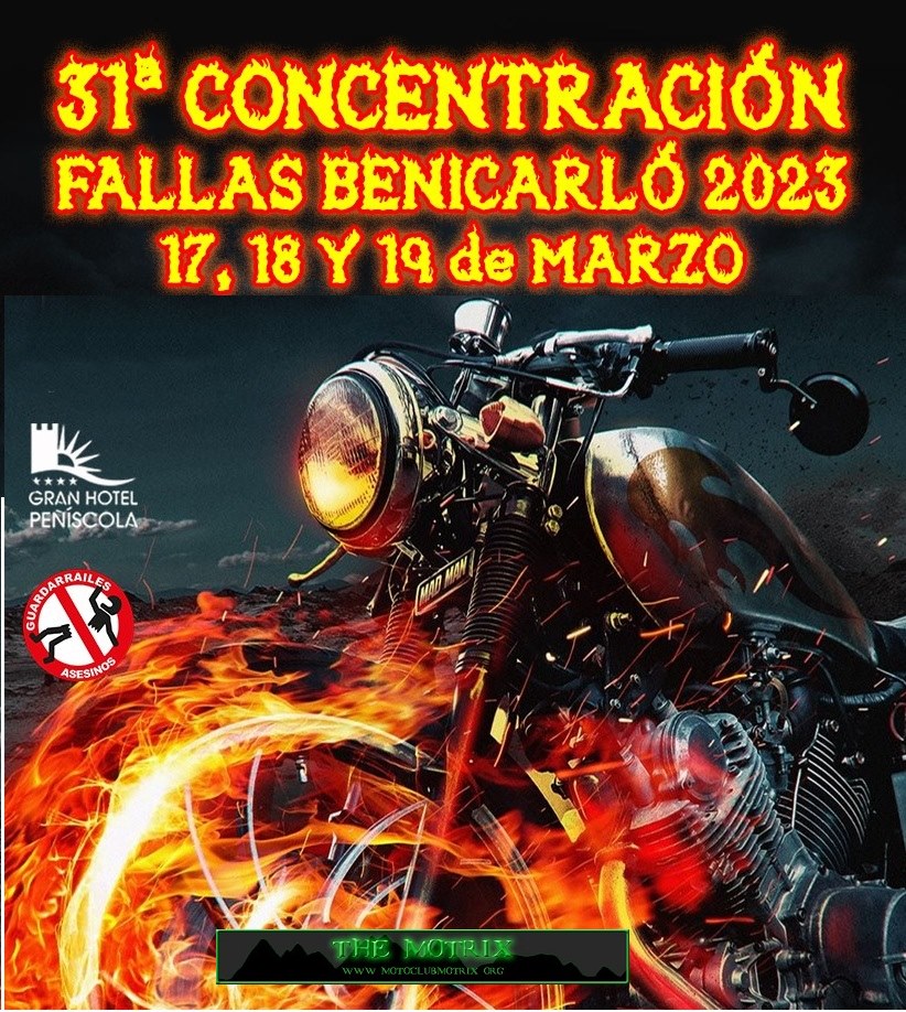 Disfruta de la 31ª edición de nuestra Concentración Motera de Fallas, un año más mantenemos el alojamiento para los asistentes en el Hotel Gran Peñíscola, pero no dispondremos de zona de acampada, y la Zona Motera estará ubicada en el pueblo junto a una falla local colaboradora, donde habrá diversas actividades y alguna que otra novedad.