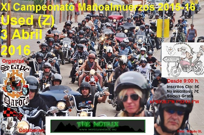 El domingo día 22 de noviembre en Montalbán (Teruel), uno más de los Mañoalmuerzos de los que se realizan por tierras mañas en este XI Campeonato de Mañoalmuerzos. Organizado por el Motoclub Despiste.