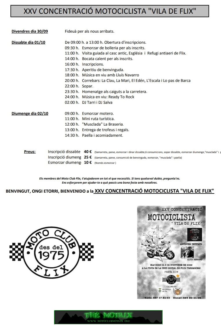 Programa XXV CONCENTRACIO MOTOCICLISTA VILA DE FLIX