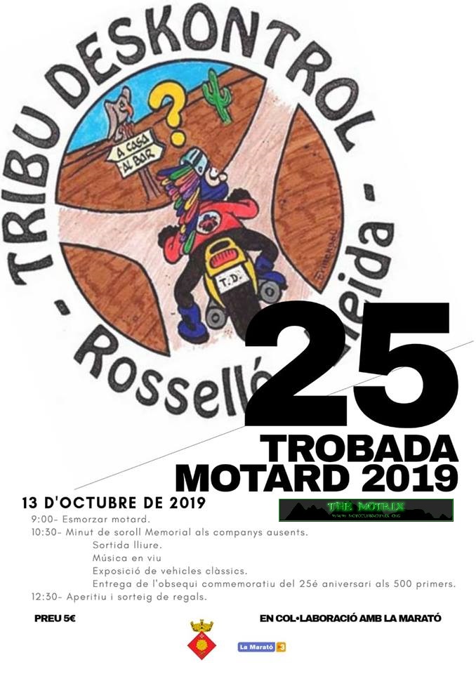Finalmente nos acercamos al almuerzo de Rosselló, Lleida, que organiza la Tribu Deskontrol. Tras unos días por nuestras tierras marchaban nuestros amigos riojanos Rubén y Zara, así que Pepe y Laura, Soraya y Toni les acompañamos una primera etapa de su vuelta y almorzamos juntos en este evento en Rosselló. Evento que convoca un buen número de moteros y que se suma al evento solidario de La Marató, que siempre es de buen recibo. Pudimos almorzar un buen bocata de buti y bebida con número para el sorteo, por 5€. Hicimos un café por allí, vimos el concierto del agradable dueto y el sorteo de regalos.