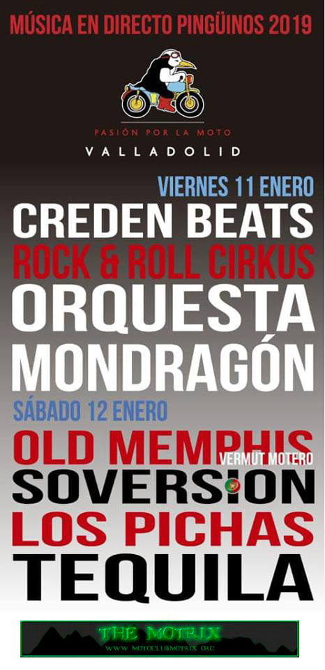 Ya hace un chorro de años que no vamos y esta edición nos acercaremos unos pocos de MOTRIX por Valladolid . Angelotti, Tony, Jordi y su hijo, y yo mismo, nos veremos en Pingüinos.